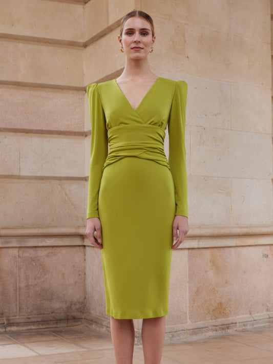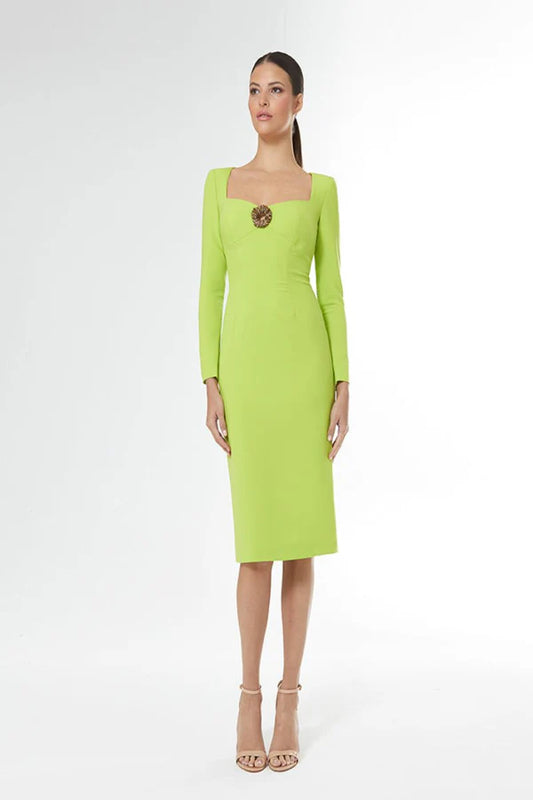 Vestido fiesta color lima Carla Ruiz 51002 con escote corazón para brillar en cualquier ocasión