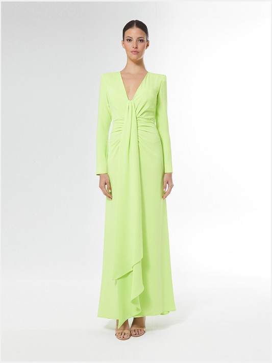 Vestido largo fiesta verde lima con lazada de Carla Ruiz 51013