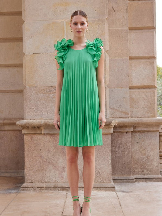 Vestido corto plisado de fiesta de Carla Ruiz 99547